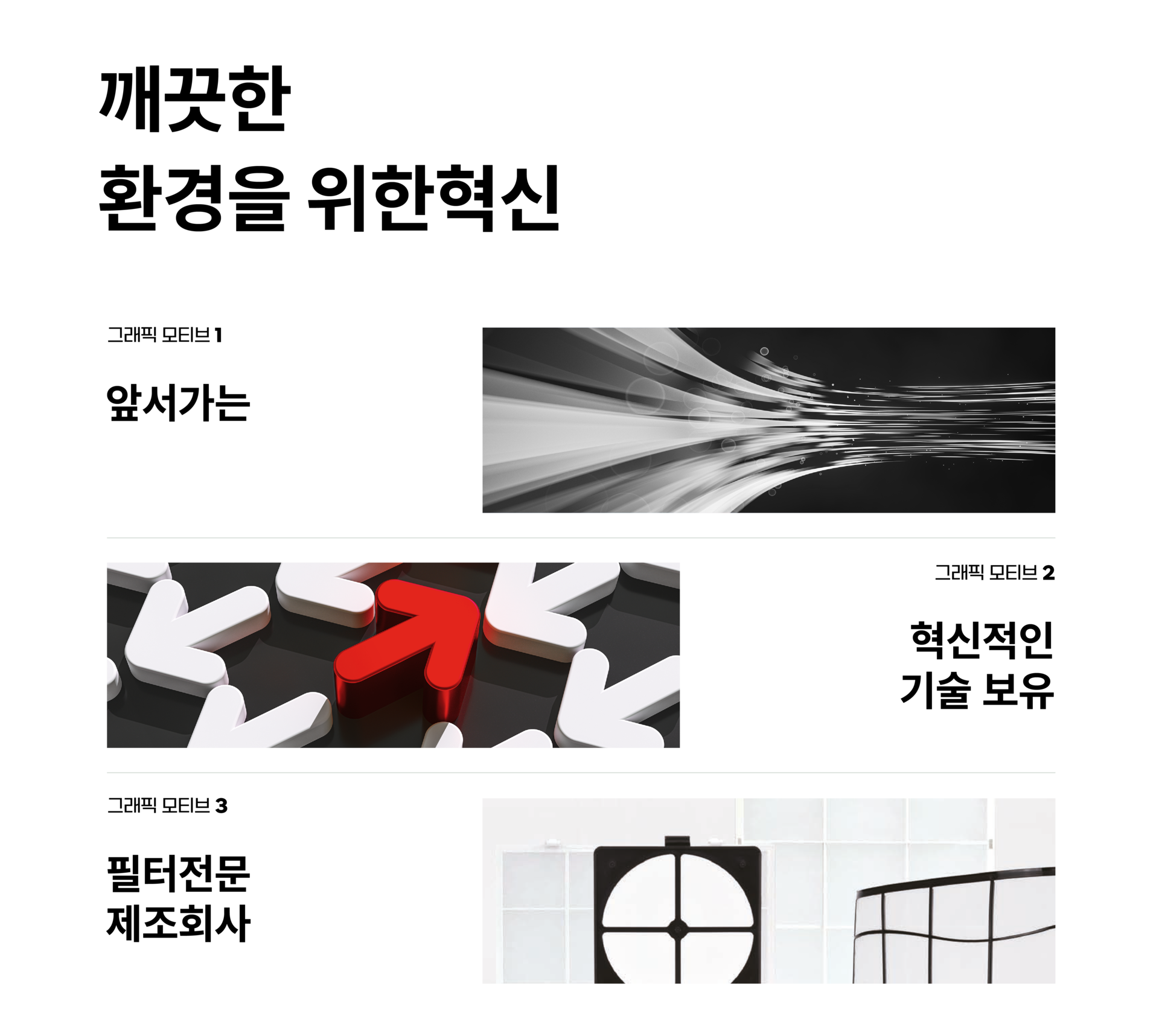 또한 이노필텍의 주요 의사결정 담당자들과의 심도 있는 인터뷰를 통한 브랜드 현황과 추구 방향을 분석하였으며 현재 적용되어 있는