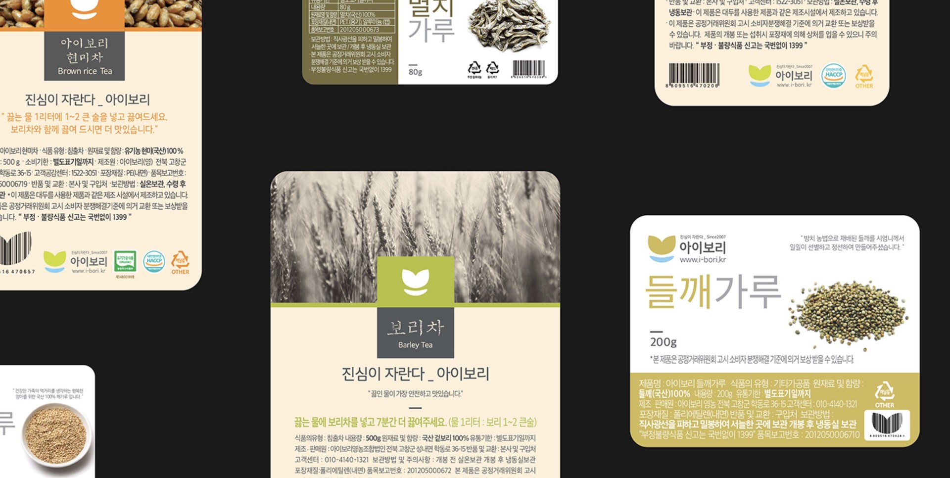아이가 안전하게 즐길 수 있는 차 종류와 친환경 과자, 이유식용 쌀, 잡곡 가루 등